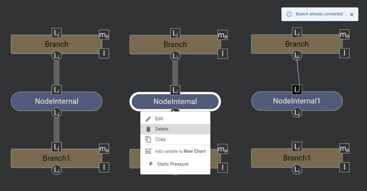 - Attempt to connect BranchA → NodeD → BranchB